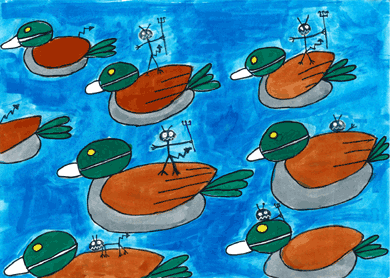 前回の入賞作品に似ているのが難点でしたが、画面構成はなかなかのものです。カモの群れを上手に表現しています。選考していた時に、パッと目に飛び込んでくる、そんな強みを持つ作品です。