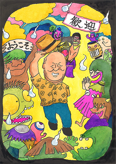 “あの世”でもこんな感じで楽しく過ごされているのだと思わせる、説得力のある絵です。