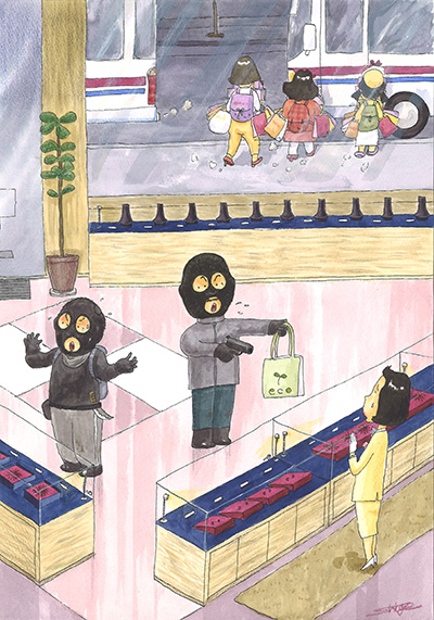 泥棒が宝飾店に入ったものの、爆買い客より一足遅かったため盗む物が無い…。